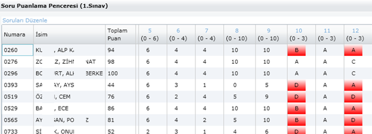 Soruların bir kısmı klasik, bir kısmı çoktan seçmelidir. Bu resimde konuşulması gereken bir konu daha bulunmaktadır. Resim gerçek bir okul ve gerçek öğrenciler üzerinden çekilmiş olsa gerek ki, öğrencilerin isimlerinin gizlenmiş olduğunu görebilirsiniz. KVKK Yasası 24 Mart 2016’da yayınlanmıştı. Bu yazı hazırlandığında demek ki, KVKK yasası yokmuş. Her zaman, her koşulda , evrensel ahlak kurallarına riayet eden K12NET’in, yasal bir sorumluluğu olmamasına rağmen, o günlerde bile öğrenci isimlerini, “etik kurallar gereği” gizlediği görülmektedir.